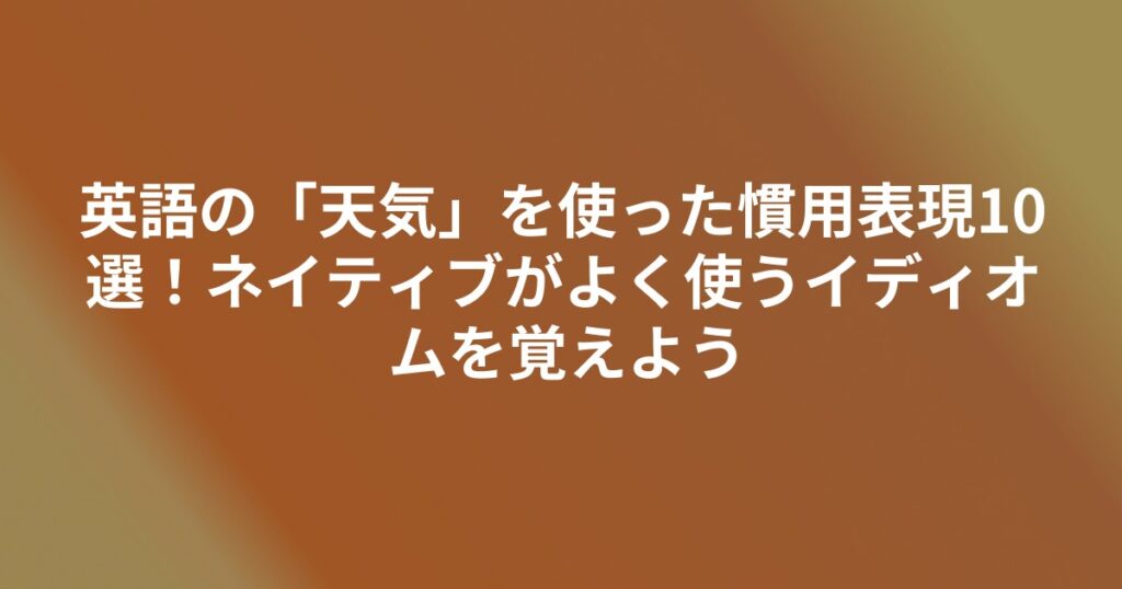 英語の「天気」を使った慣用表現10選!ネイティブがよく使うイディオムを覚えよう