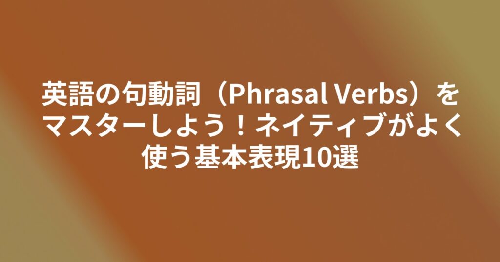英語の句動詞(Phrasal Verbs)をマスターしよう!ネイティブがよく使う基本表現10選