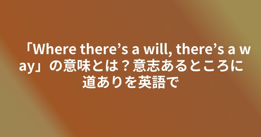 「Where there’s a will, there’s a way」の意味とは?意志あるところに道ありを英語で