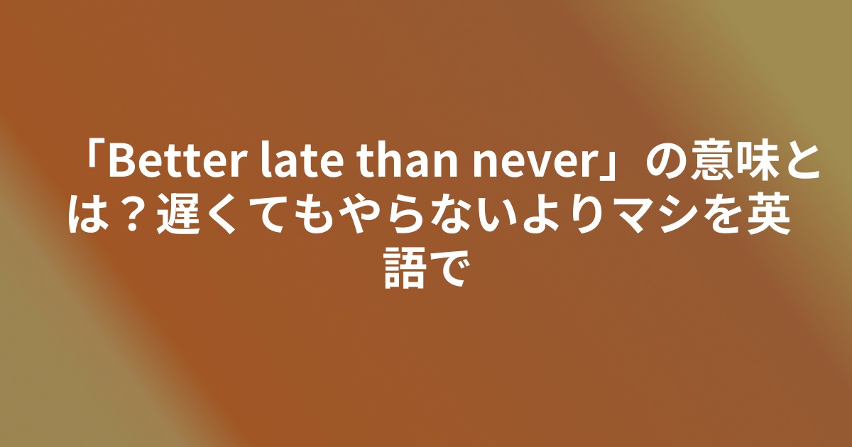 今日は英語のことわざ「Better late than never」について紹介します。直訳すると「決してやらないより遅い方が良い」という意味ですが、日本語では「遅くてもやらないよりマシ」や「遅くても何もしないよりはいい」といった意味で使われる表現です。