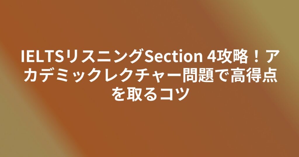 IELTSリスニングSection 4攻略!アカデミックレクチャー問題で高得点を取るコツ