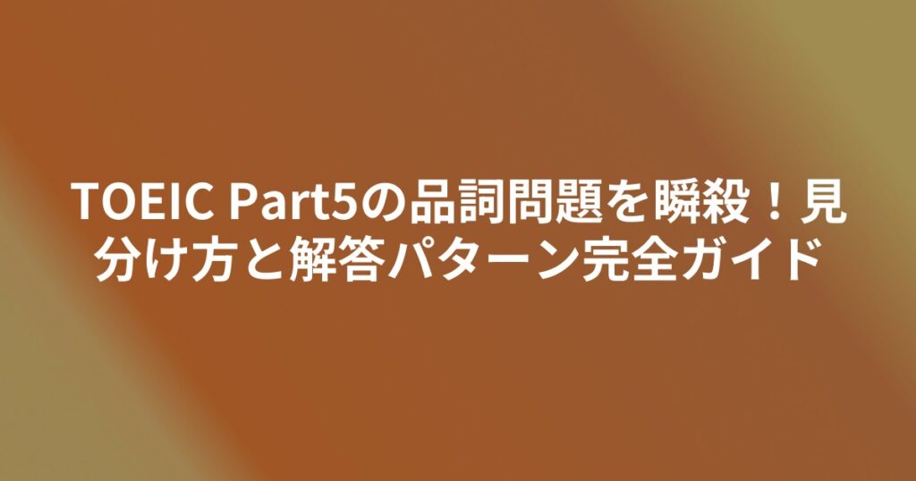 TOEIC Part5の品詞問題を瞬殺!見分け方と解答パターン完全ガイド
