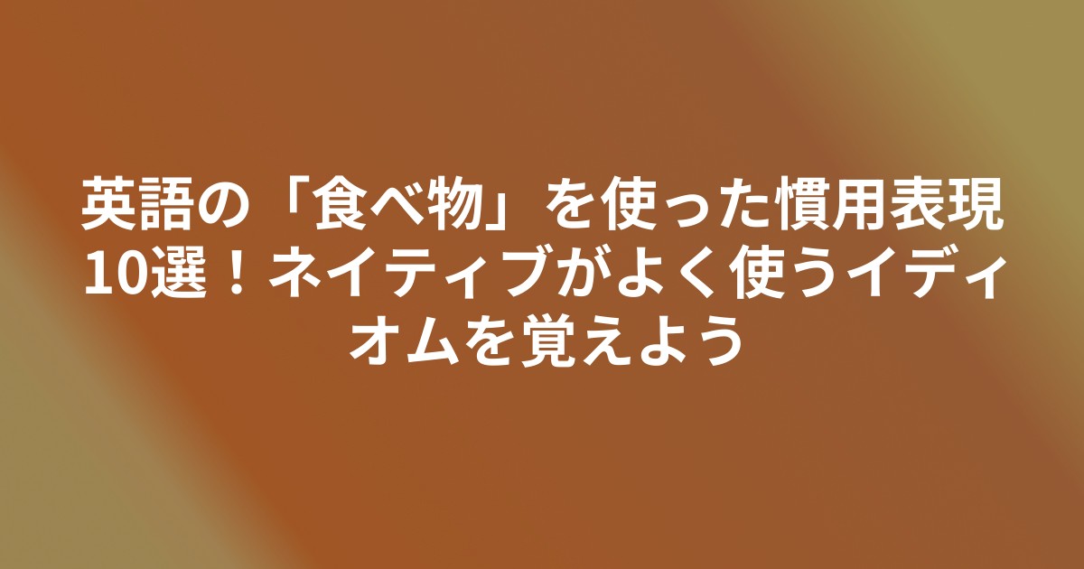 今回は、ネイティブがよく使う食べ物関連のイディオムを10個厳選して紹介します!これを覚えておけば、会話がもっと楽しくなりますよ。