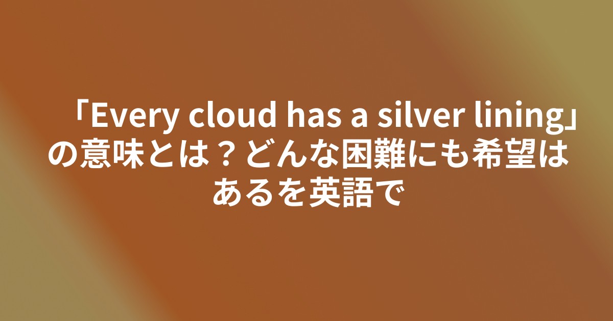 今日は英語のことわざ「Every cloud has a silver lining」について紹介します。直訳すると「どんな雲にも銀の裏地がある」となりますが、日本語では「どんな悪いことにも良い面がある」「困難の中にも希望はある」という意味で使われる表現です。