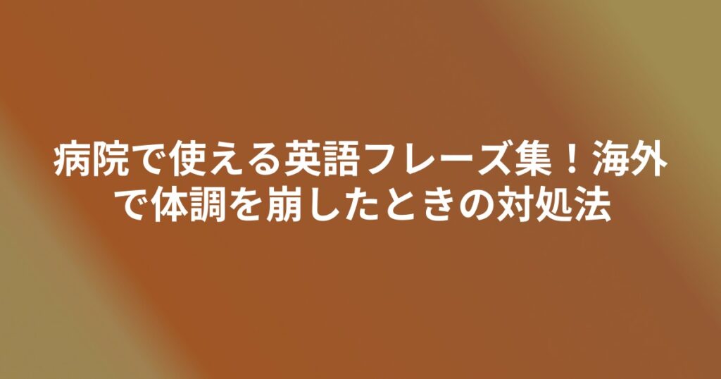 病院で使える英語フレーズ集!海外で体調を崩したときの対処法