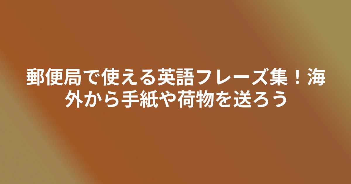でも実は、郵便局で使う英語フレーズはそれほど多くありません。今回は、海外の郵便局で手紙や荷物を送るときに使える実践的なフレーズを紹介します!